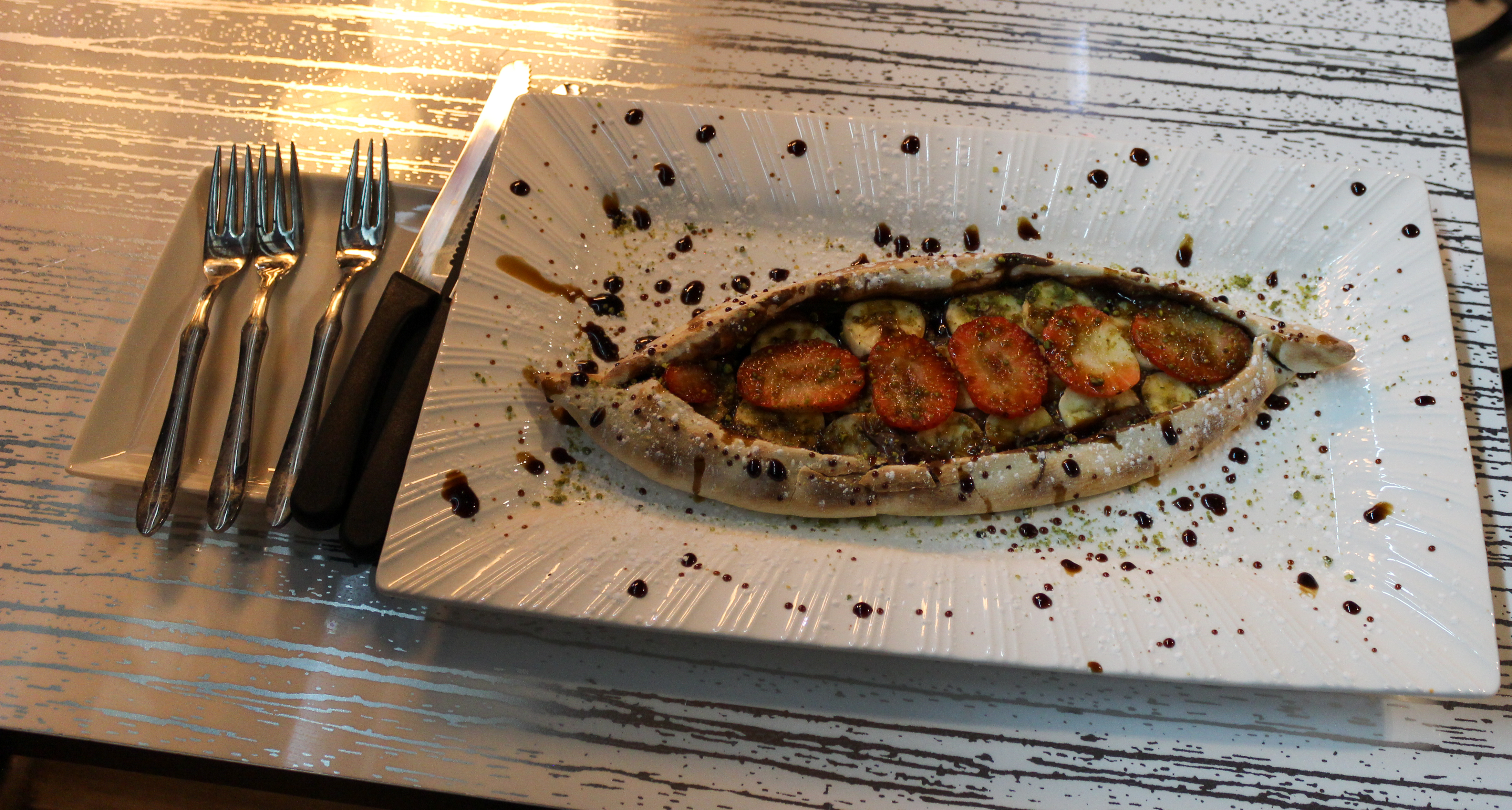 To add on, just recently, Mr. Pide made this new dish called Pidella (basically Pide and nutella). I have never seen anything like this before. It’s a Pide style dessert. It has the flatbread but instead of meat or vegetables. It has strawberries, pistachios, sugar powder, nutella, and bananas. This is similar to the French dish called crepe. Remember this is a must try for your dessert and it’s not even on the menu as of right now! Just tell them you want a Pidella and you’ll be good.